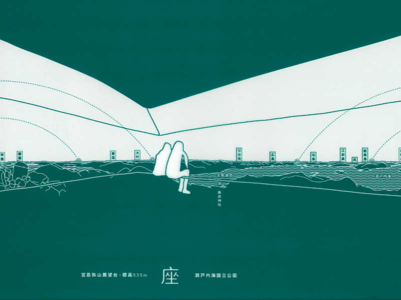 展望休憩所完成に合わせ、現地で空中撮影したものです。(撮影日2013年10月30・31日)普段は登頂できない早朝・夜間の景観は、このポストカード以外にはありません。おもて面は「座」ブランド。