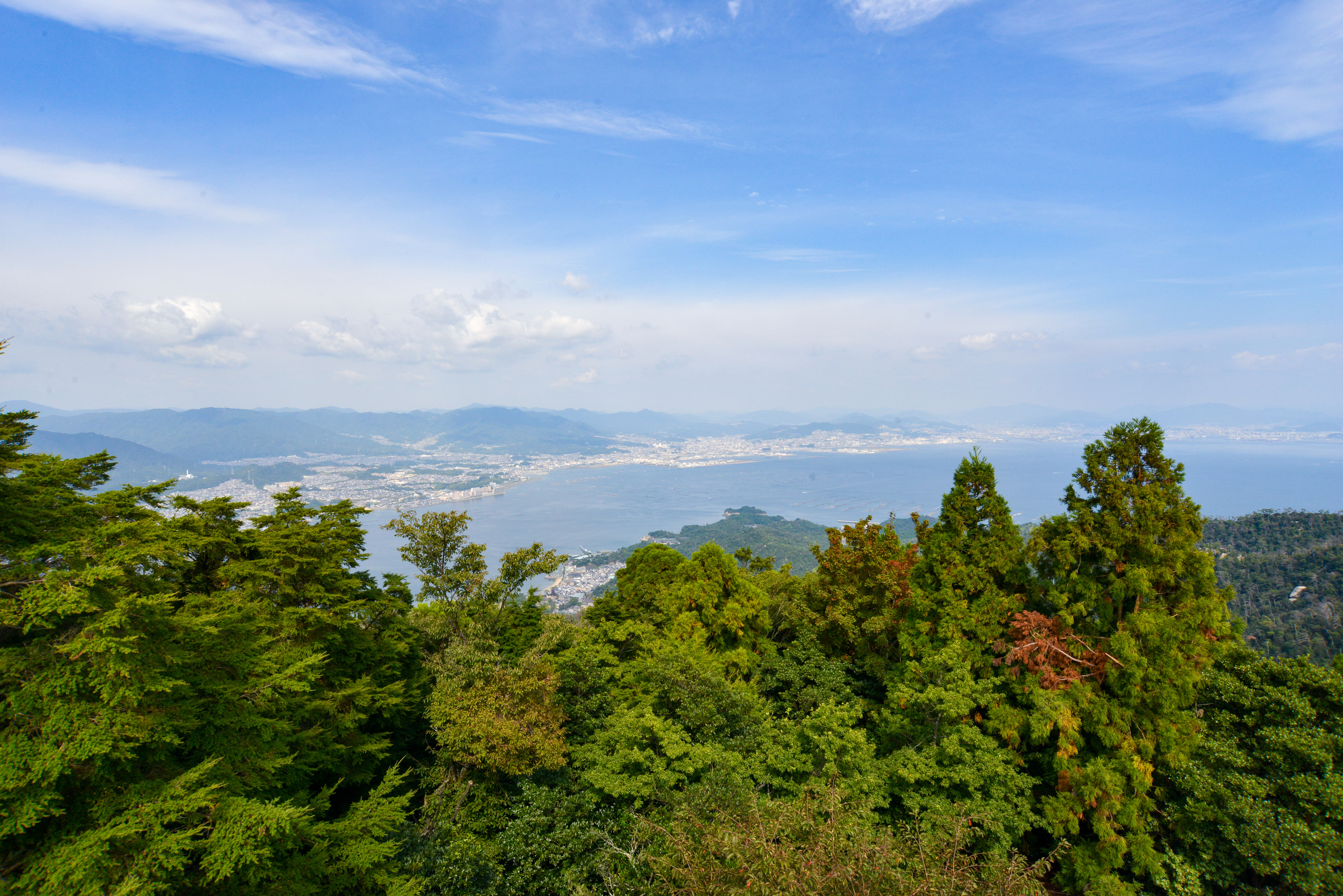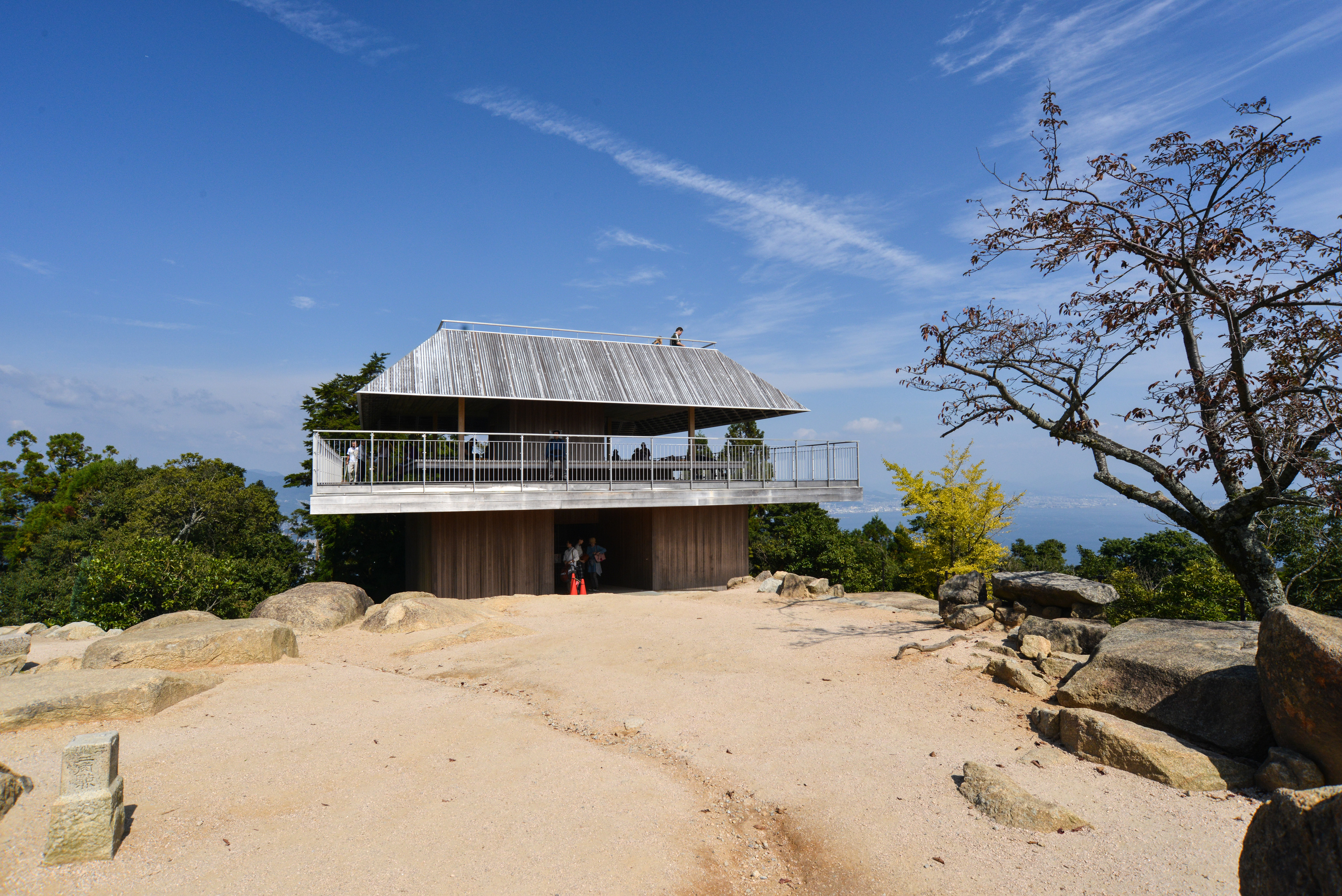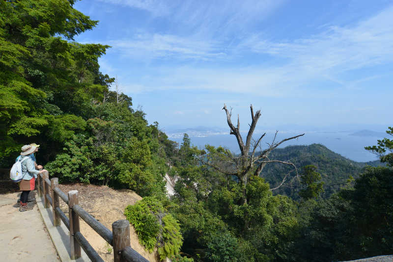 山頂に到着したら新しくなった弥山山頂展望台で、眺めを。360度のパノラマ、宮島から見える瀬戸内海の景色はとてもきれいで良い風も。そして、お昼ご飯。