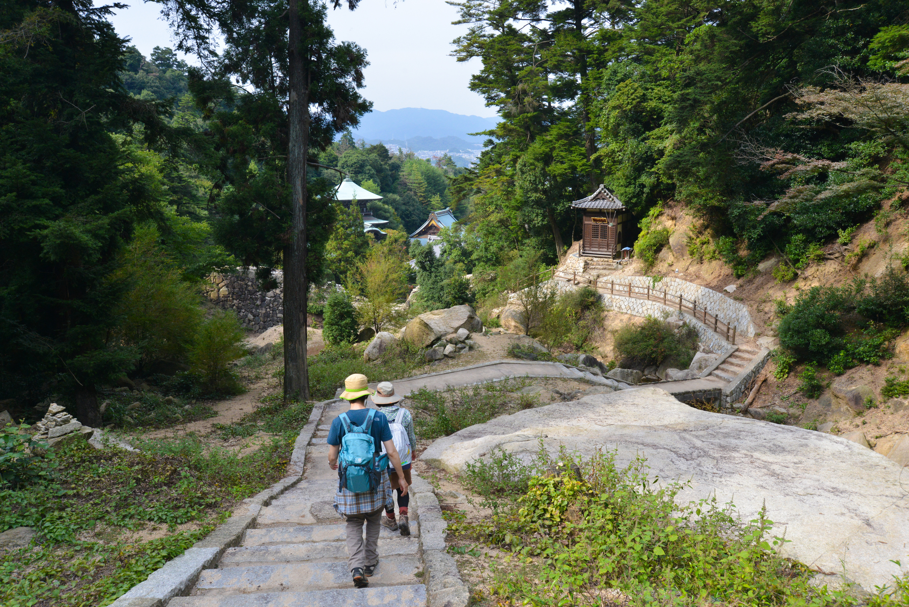 弥山登山は、一番分かりやすい紅葉谷公園から上がる紅葉谷コースで、片道1時間50分ほど。お昼ご飯を山頂で食べるなら、朝10時には出発です。