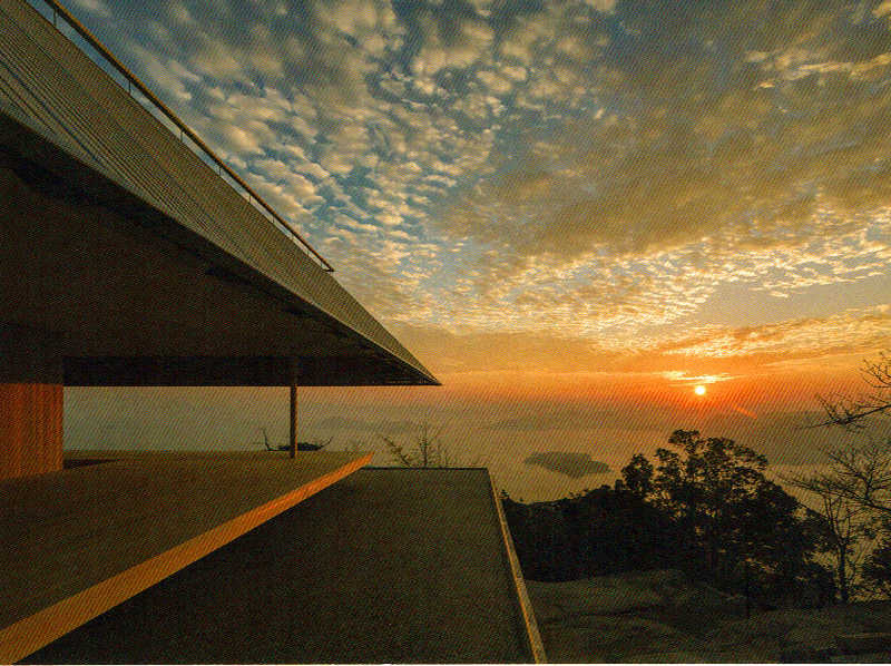 展望休憩所完成に合わせ、現地で空中撮影したものです。(撮影日2013年10月30・31日)普段は登頂できない早朝・夜間の景観は、このポストカード以外にはありません。おもて面は「座」ブランド。